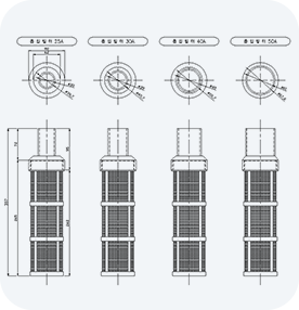 당사에서 자체적으로 생산하며 다양한 구경의 레듀샤 보유
